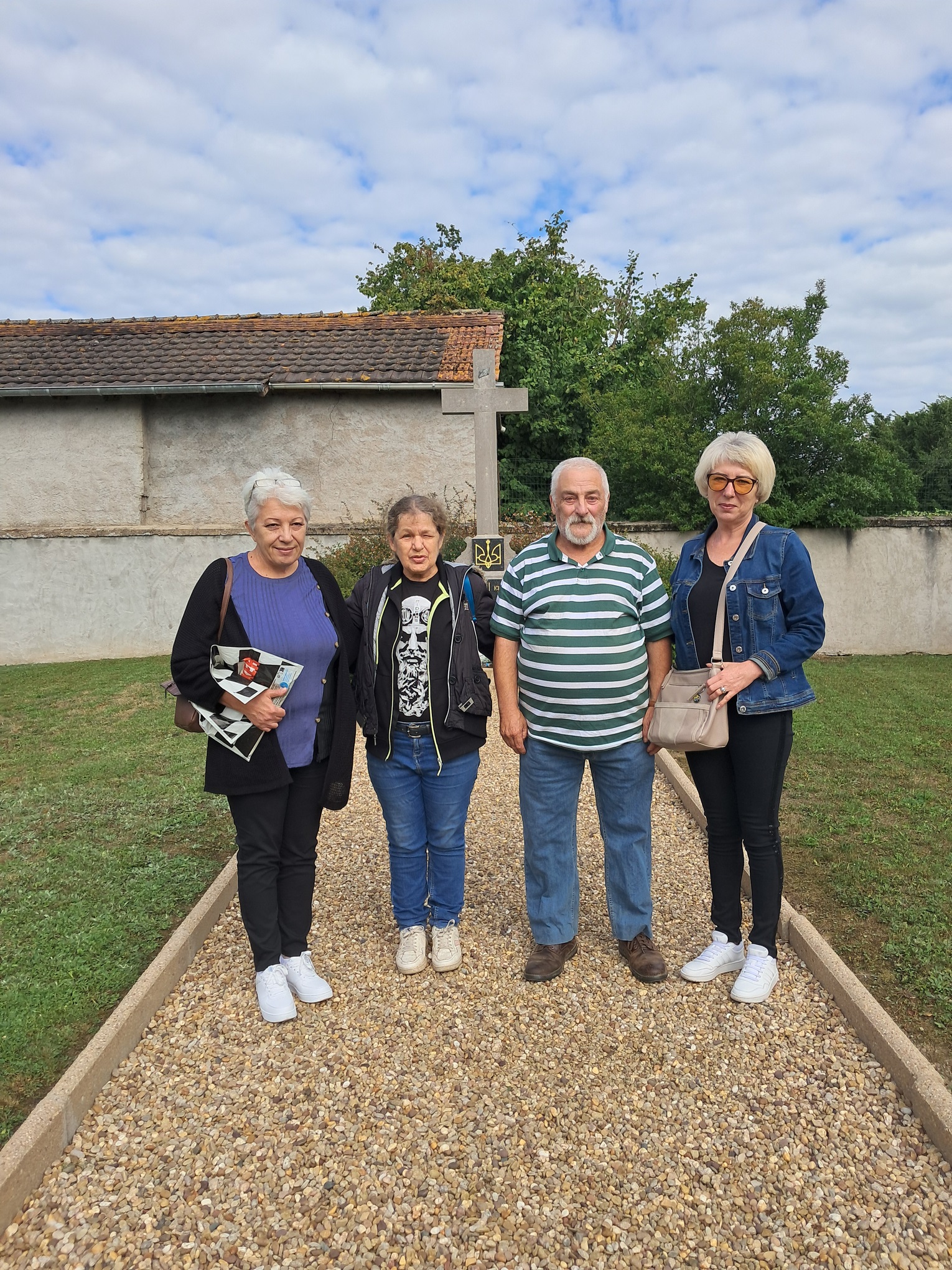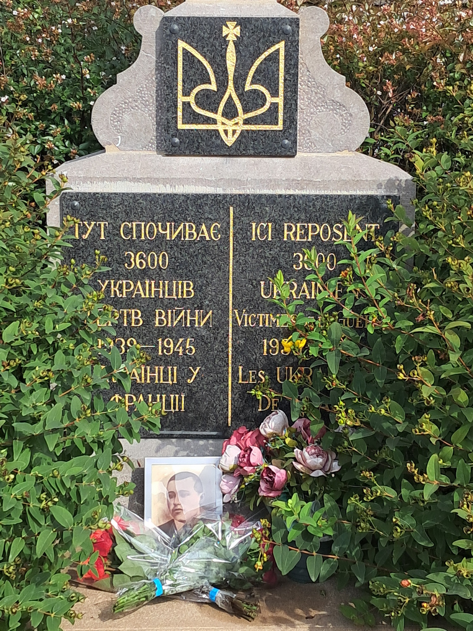 Elles ont déposé deux bouquets de fleurs ainsi que le portrait de leur grand- père au pied de la croix du cimetière ukrainien de BOULAY- MOSELLE.