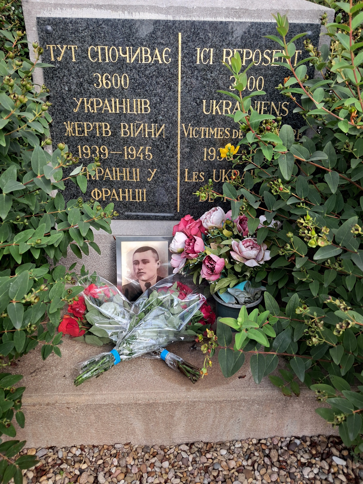 Elles ont déposé deux bouquets de fleurs ainsi que le portrait de leur grand- père au pied de la croix du cimetière ukrainien de BOULAY- MOSELLE.